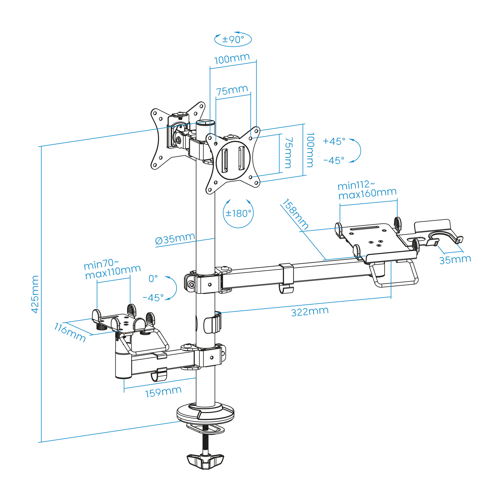 Rotación +180° / -180° (permite posición vertical y horizontal)